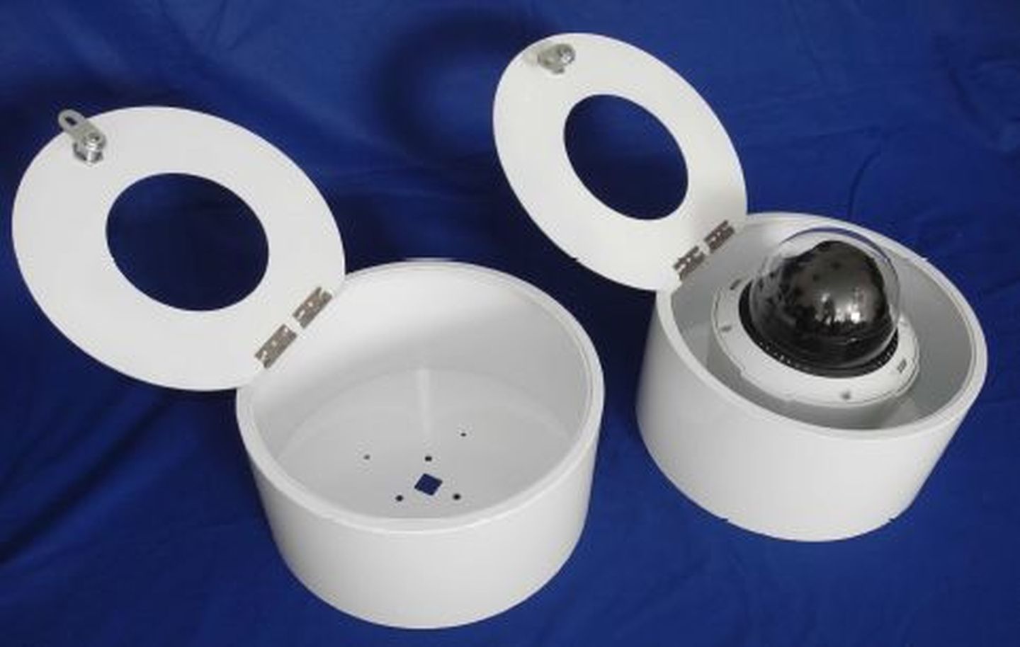 made of steel to protect small cameras -For small cameras , called CUBE, we made a real rugged housing many of these units are used in elevators or parking garages. A special edition we made in stainless steel for use on ships. A indoor and outdoor version is available. We offer different versions. Build in light, movement detectors, microfones or speakers